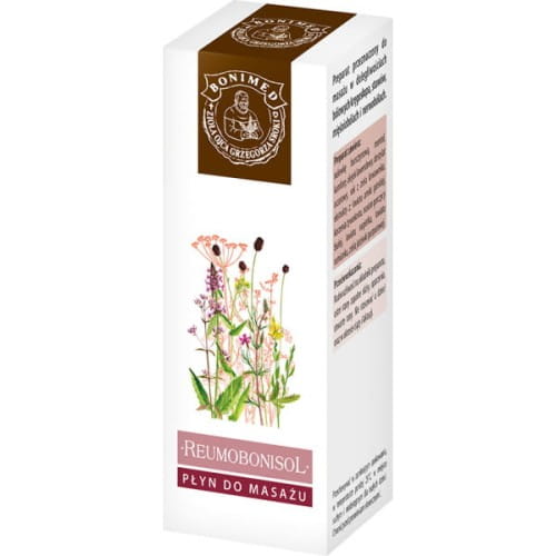 Reumobonisol to preparat przeznaczony do masażu w przypadku dolegliwości bólowych kręgosłupa, stawów, mięśni oraz nerwobóli. Starannie dobrana kompozycja naturalnych ekstraktów i olejków eterycznych wspomaga rozluźnienie mięśni, poprawia krążenie i przynosi uczucie ulgi.