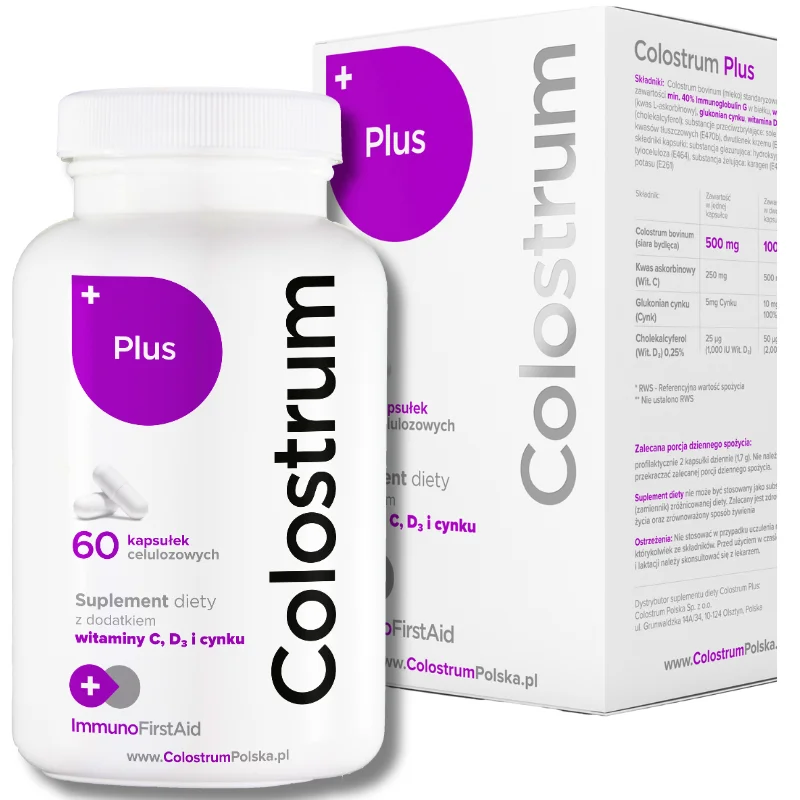 Colostrum PLUS to starannie opracowany suplement diety w formie kapsułek, który łączy w sobie siłę naturalnych składników wspierających odporność i procesy regeneracyjne organizmu.
