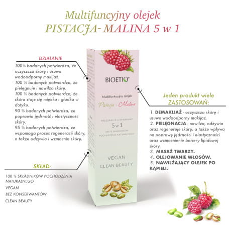 Multifunkcyjny olejek PISTACJA-MALINA PIELĘGNACJA & DEMAKIJAŻ 5 w 1, BIOETIQ